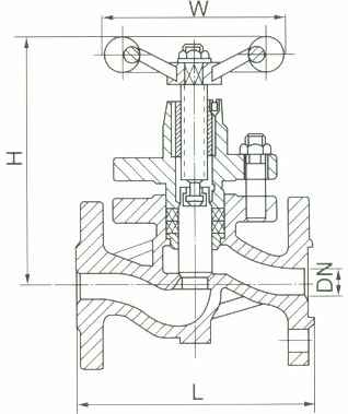 柱塞阀是由阀体、阀盖、阀杆、柱塞、孔架、密环、手轮等零件组成。当手轮旋转时,通过阀杆带动柱塞在孔架中间上下往复运动来完成阀门的开启与关闭功能。